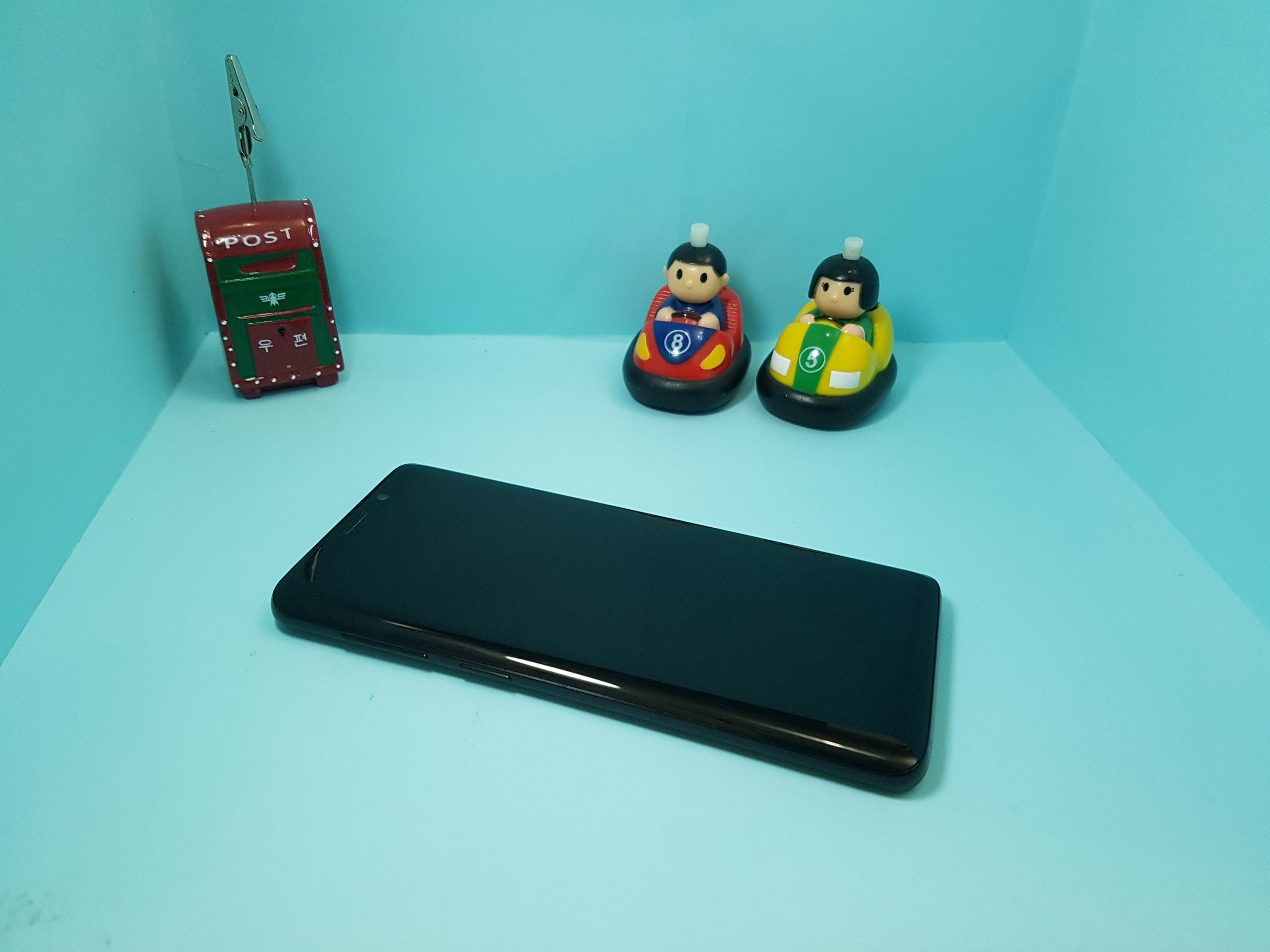 핸드폰이 차에 깔려서 산산 조각이 났습니다.
