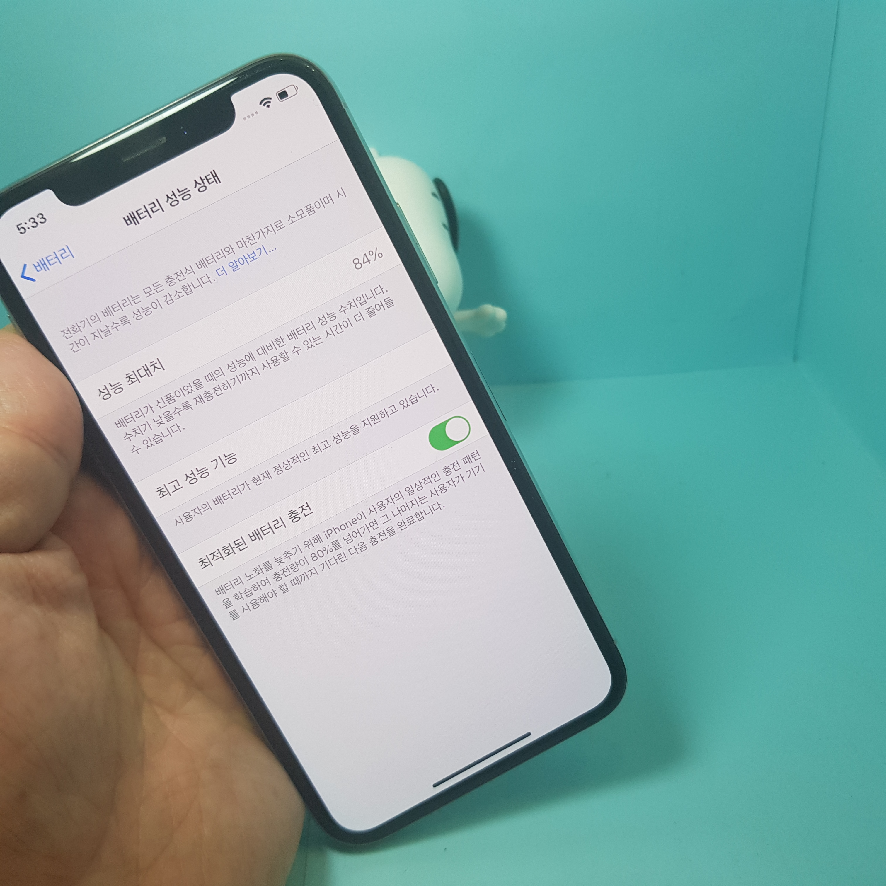 아이폰X 이상부터는 화면밝기에들어가서