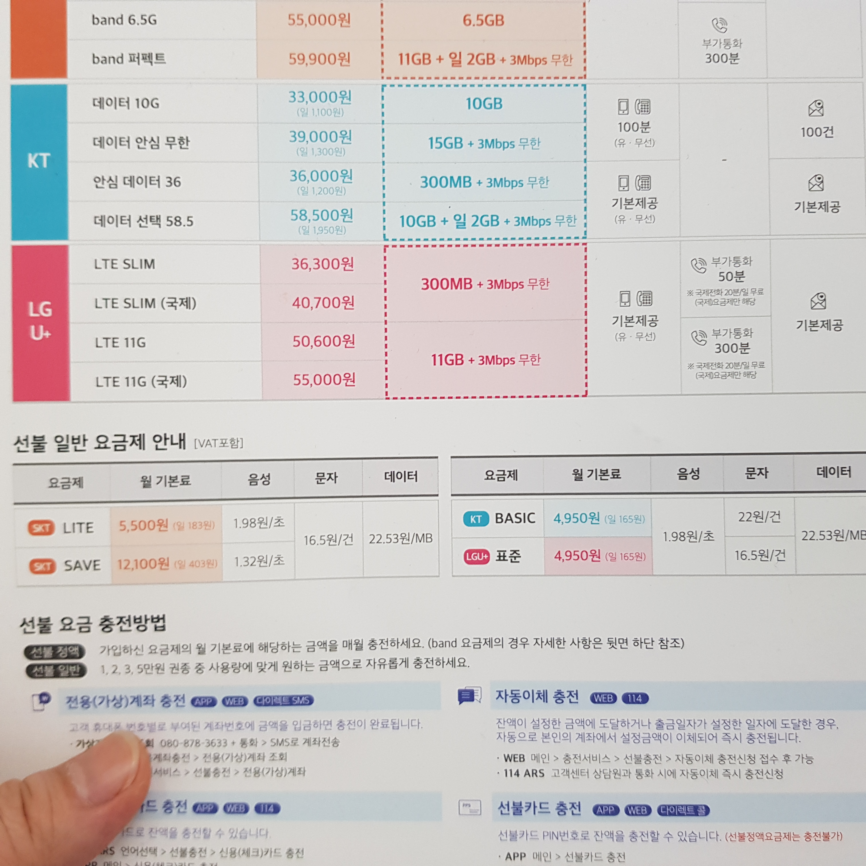 그다음으로 많이 사용하는 LG선불폰 요금제는