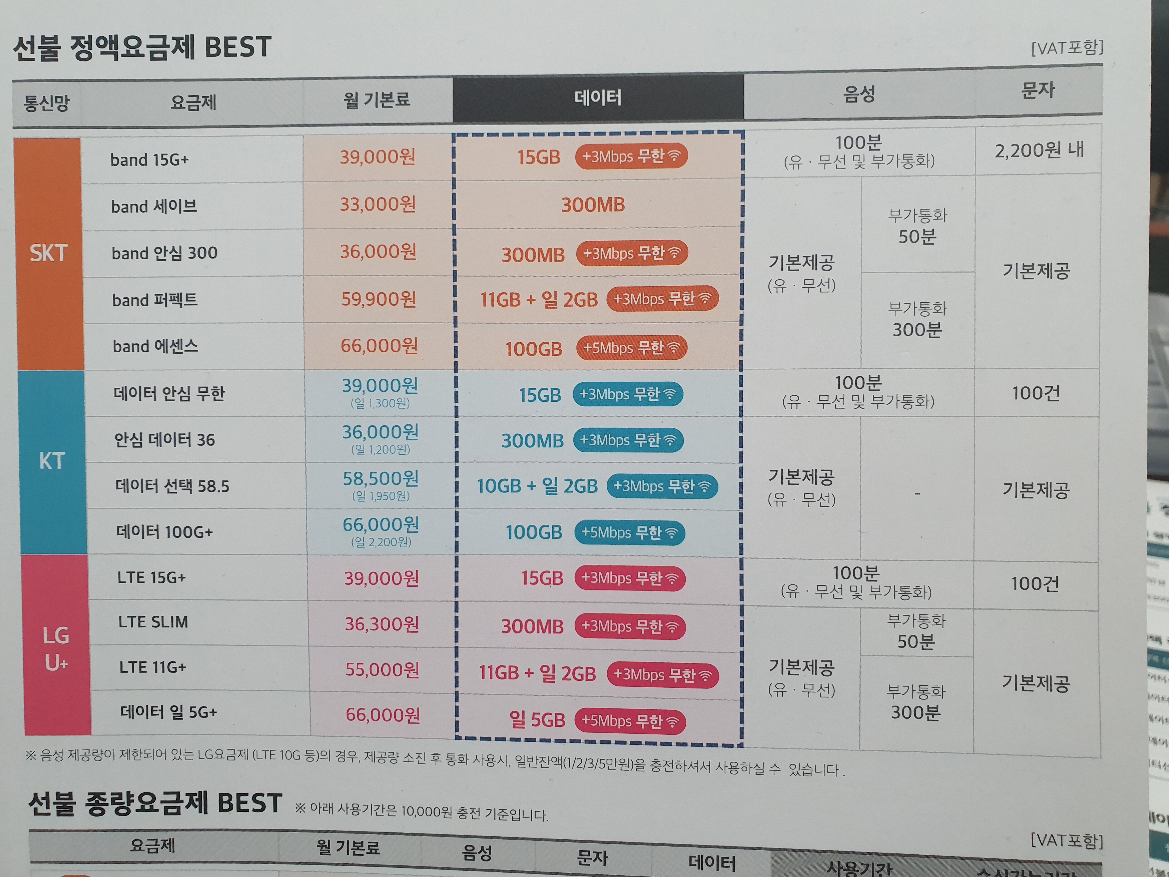 일반요금제 , 그리고 정액요금제(무제한요금제)