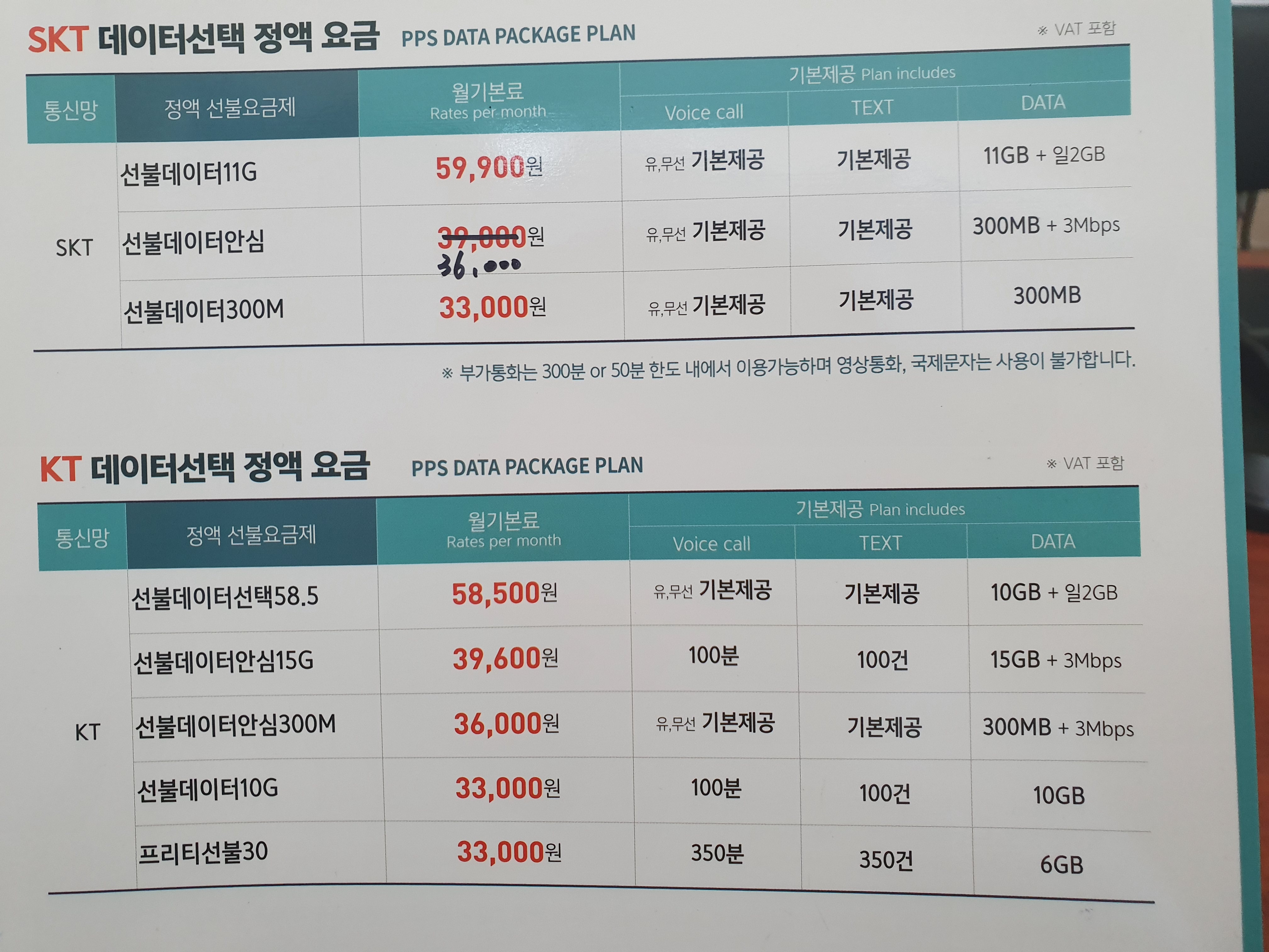 데이터는 300MB LTE 이후 3G 속도로 무제한입니다 .