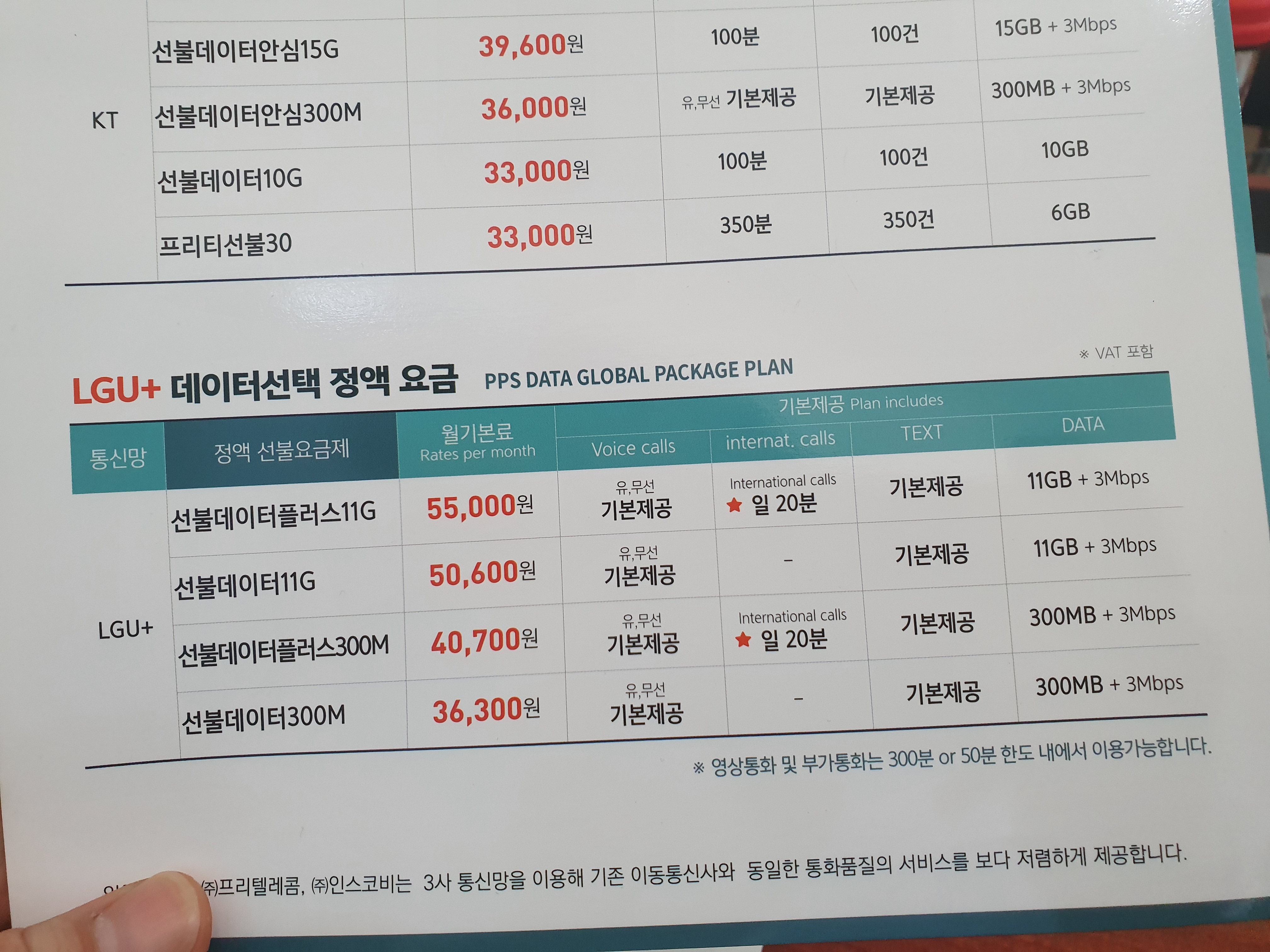 데이터는 30일동안 11GB제공 다사용하면 매일 2G제공 그후 3G무제한입니다.