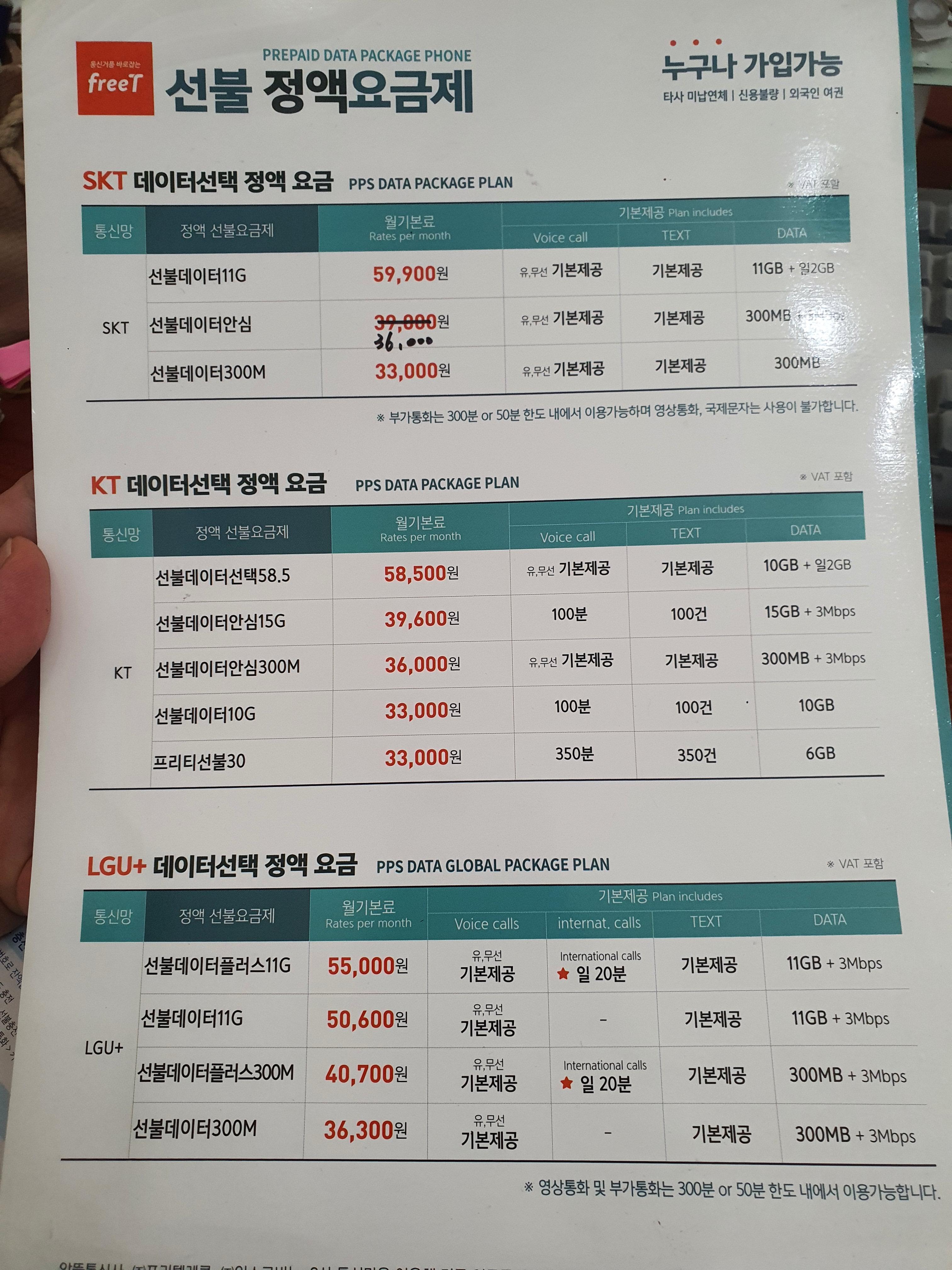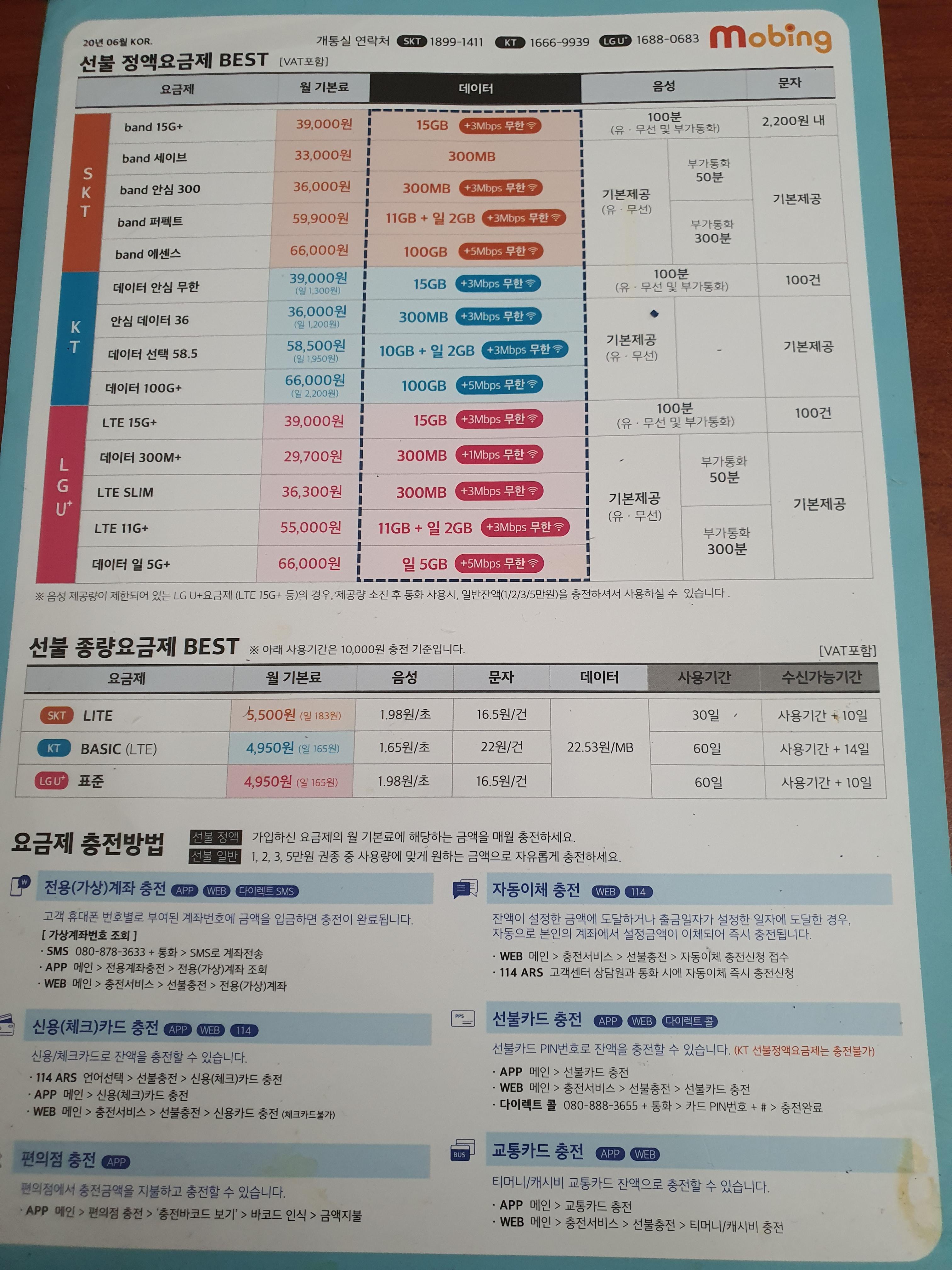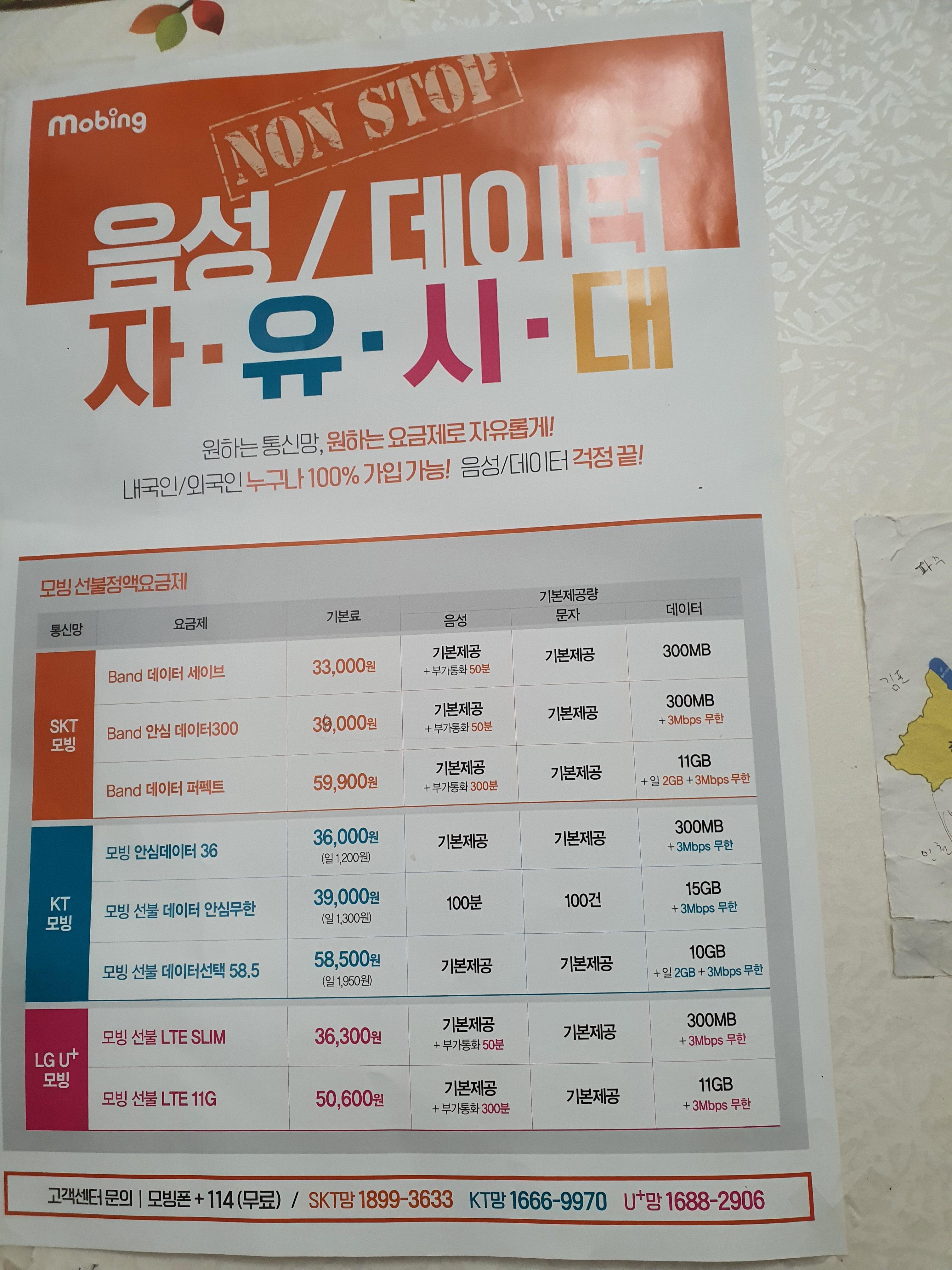 본인명의로 개통 가능하며 , 다양한 요금제가