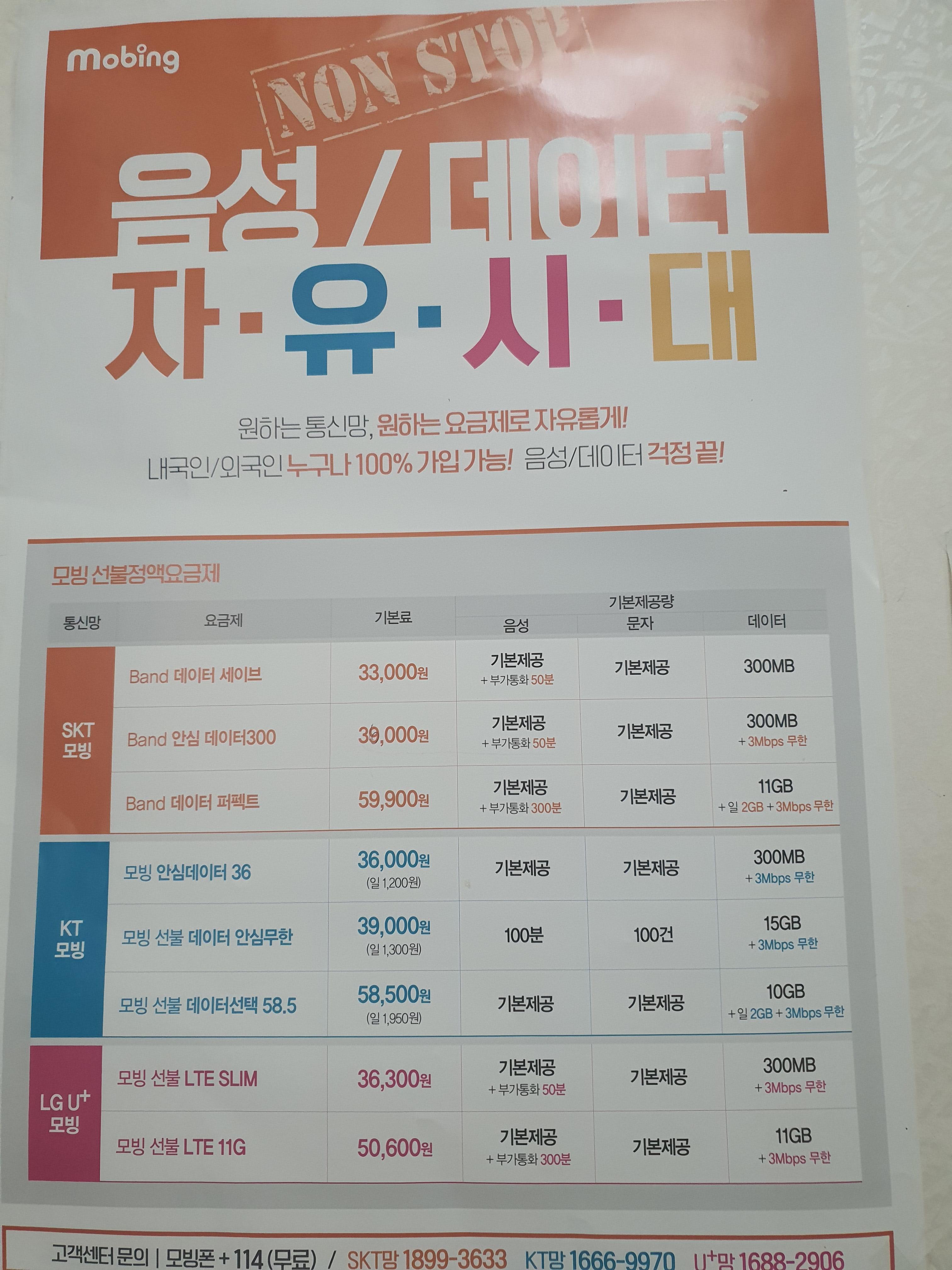 선불폰회사도 다양하고 많습니다.